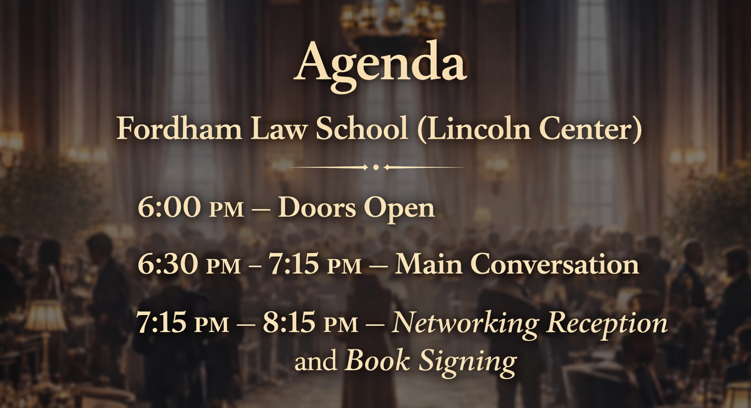 Following the conversation, guests are invited to a networking reception and book signing—an opportunity to engage directly with the speakers, fellow alumni and professionals, and to experience firsthand how power often begins: through connection.